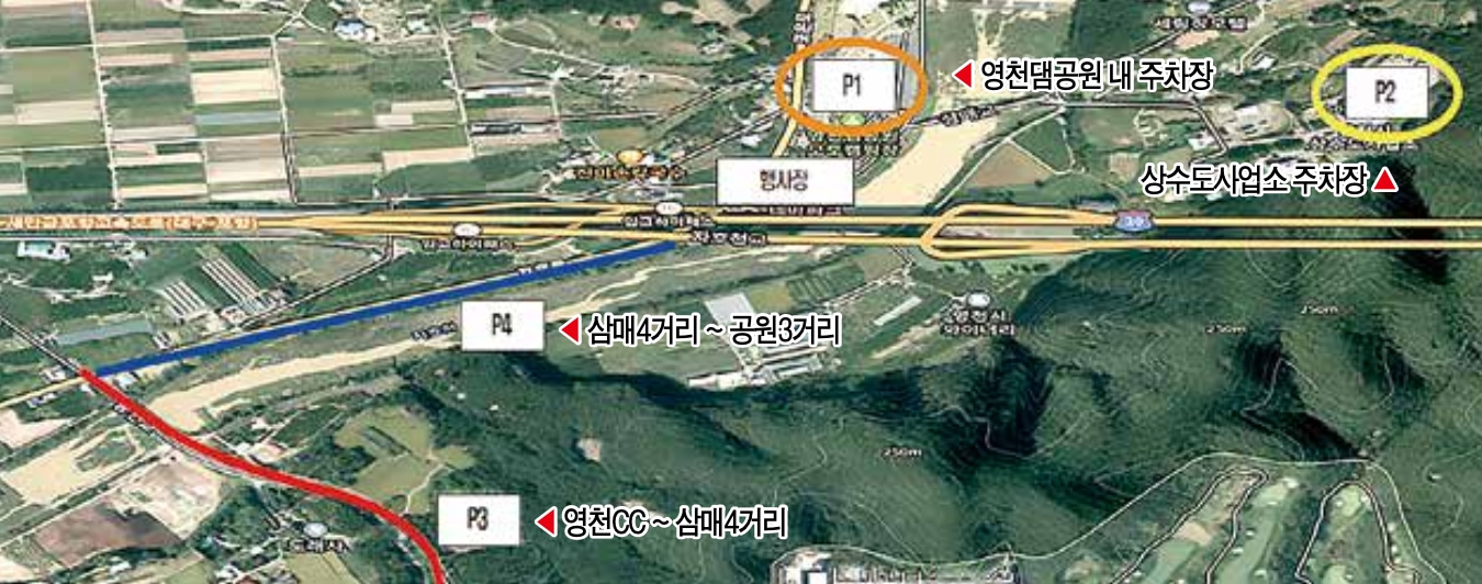 ※ 행사장 인근은 차량이 많이 몰리므로 가급적 영천시민운동장 주차장을 이용해 주시기 바랍니다.